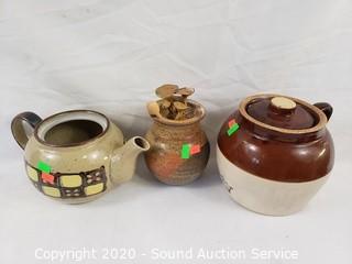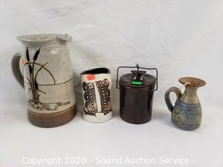 Lot #0236: 16pc Art Pottery Mugs, Pitchers, Crocks & More