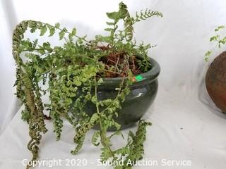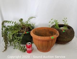 Lot #0101: 3 Pottery Planters - 2 w/Shrubs