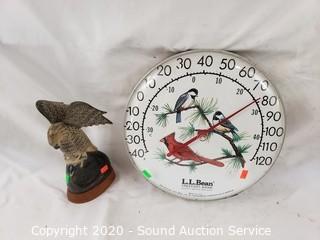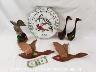 Lot #0284: Carved Horn & Wood Bird Figures & Thermometer
