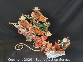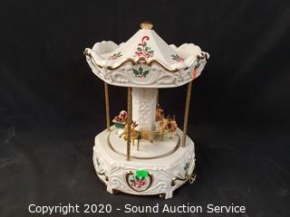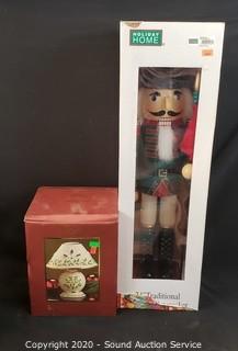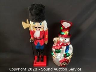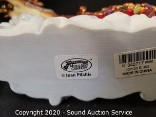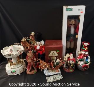 Lot Details: Includes Santa and snowman figures, nutcracker, Lenox holiday tea light lamp, porcelain music carousel reindeers.