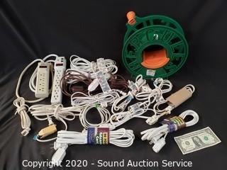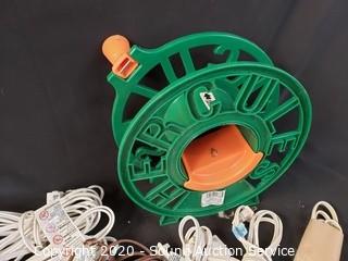 Lot #0329: Lot of Various New & Used Ext. Cords w/Reel
