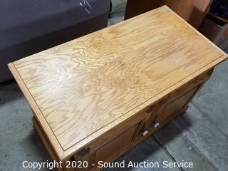 Lot #0038: Rolling Oak Finish Console Cabinet