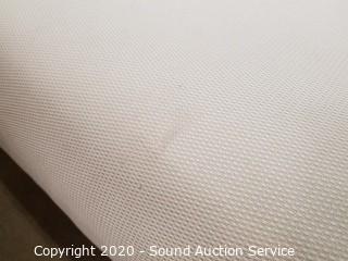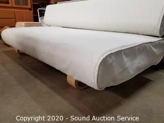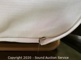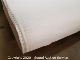 Lot Details: Thick foam cushion. Some dirty spots, has removable covers for cleaning. Otherwise in great condition. 31" H x 80" W x 36" D x 15" to seat.