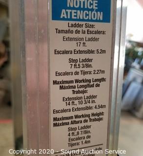 Lot Details: 17ft extension ladder, 7ft 5-3/8in step ladder, 300lb capacity.