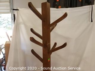 Lot #0277: Wood Hall Tree Coat/Hat Rack