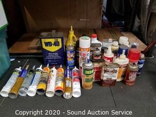 Lot Details: Includes Dap sealant, WD-40, all purpose spray adhesive, EP gear lubricant, Engine Bright and much more.