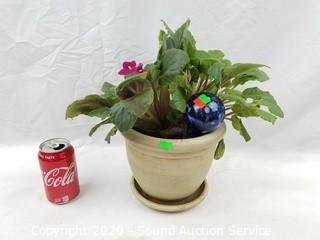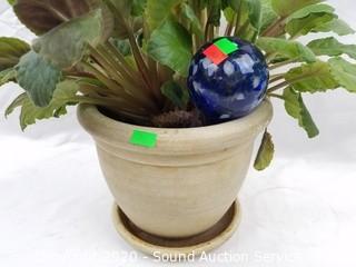 Lot Details: 7" x 8" pottery pot, 8" x 16" plant. Comes with glass water globe.