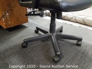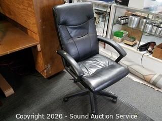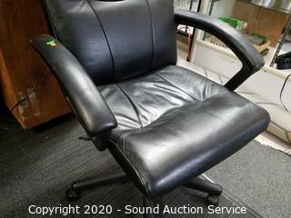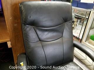Lot Details: Couple of the bolts holding the arms on are loose. Some minor wear to the leather on the back right arm.