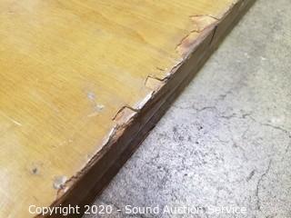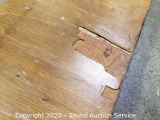 Lot Details: Headboard, footboard, rails and slats. Footboard and side rails have some damage to the edges. 26" and 47" tall, 57" wide.