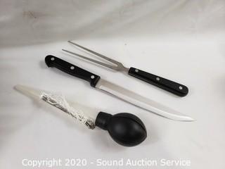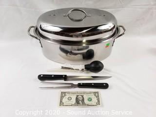 Lot #0200: New Stainless 16" Roaster w/Carving Set & Baster