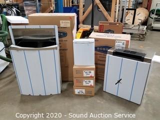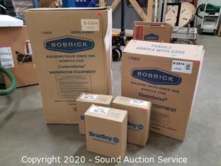 Lot Details: Includes new Bobrick Stainless Automatic Paper Towel Roll Dispensers B2974, 18" x 15" x 9", $354 retail value. New Bobrick Stainless Recessed Waste Receptacle with Linermate B-43644, 26.25" H x 15.75" W x 4" D, 12.8 Gal. $324 retail value. 3pk Bradley 4A10-11000 Stainless Napkin Disposals, $40 retail value each, 10" H x 8" W x 3.7/8" D.