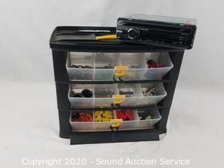 Lot #0172: Organizer w/Electrical Hardware & Car CD Player