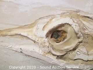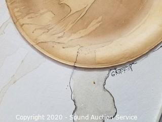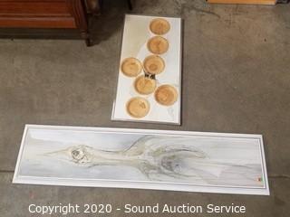 Lot Details: Includes high relief bird and pottery bowl and inset artwork. Both are signed Griffin. 37" x 19" and 63" x 15".