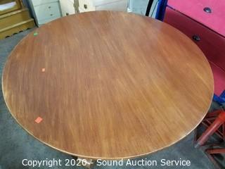 Lot Details: Some wear to the finish. 29" T x 45" diameter. Maple or pecan finish.