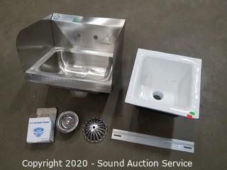 Lot #0049: Stainless Sink & Cast Iron Enamel Floor Drain