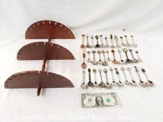 Lot #0305: Various Collector's Spoons w/3-Tier Display
