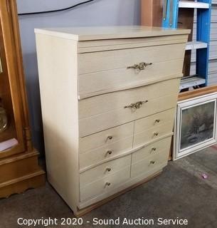 Lot #0063: Vtg. 4-Drawer Laminate Finish Dresser