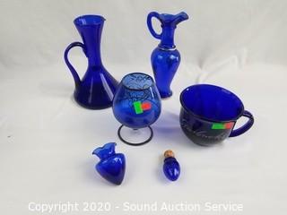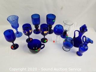 Lot #0115: 12pc Cobalt Stemware, Decanter & More