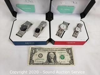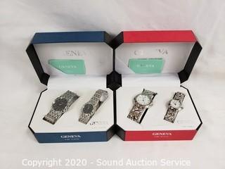 Lot #0355: 2 Sets of Geneva His/Hers Quartz Wrist Watches
