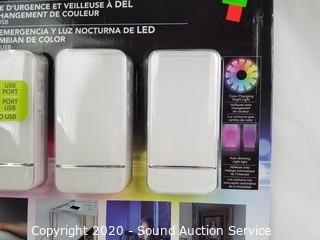 Lot #0263: 3pk Sunbeam RGB LED Power Failure Night Lights