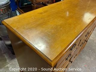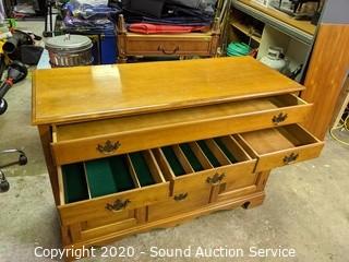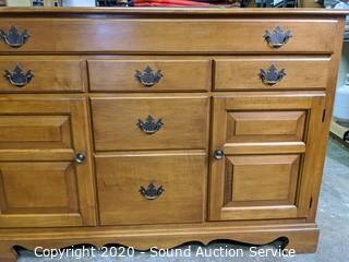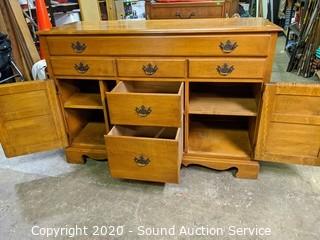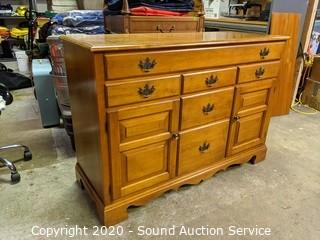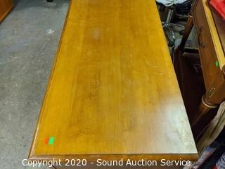 Lot Details: Solid wood construction. Some minor wear to the finish, otherwise in excellent condition. 36" x 52" x 20".