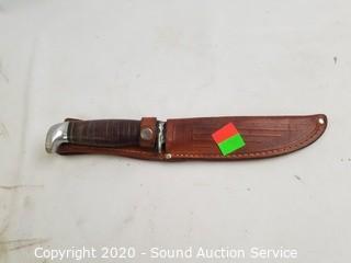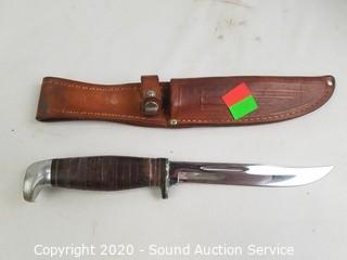 Lot Details: In excellent condition. 9" long, 4.5" long blade. Comes with leather sheath.