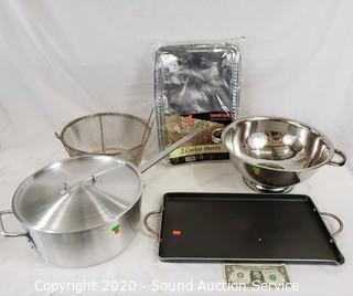 Lot #0330:     Crest Ware 10qt Pot w/Fry Basket & Other Cookware