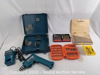 Lot #0266: Makita 3/8" Cordless Drill Driver w/Various Bits