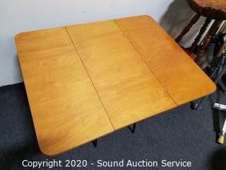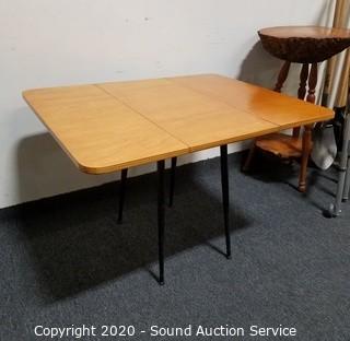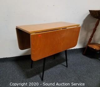 Lot Details: 27" x 30" x 15" with (2) 12" drop leaves. Notice a couple tiny scuffs, otherwise in excellent condition.
