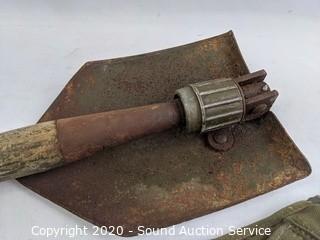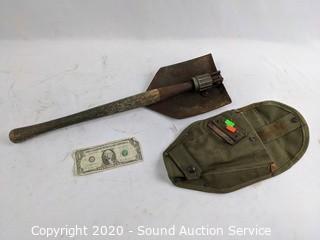 Lot #0197: Military Folding Trench Shovel w/Canvas Sheath