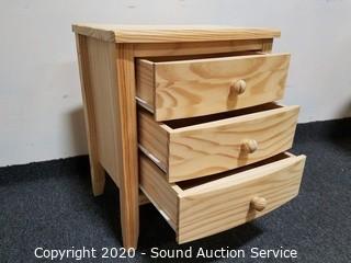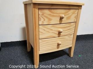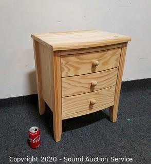 Lot #0041: Raw Pine 3-Drawer Nightstand