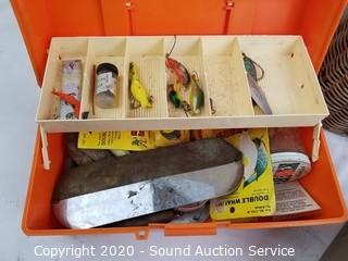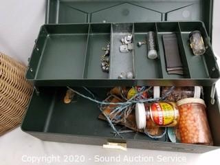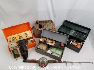 Lot #0129: Tackle Boxes w/Tackle, Rod w/Reel & Creel