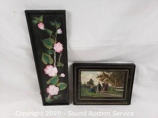 Lot Details: Includes H.Schoyen painting, hand painted board and 2 needle point quotes (one is dated 1934). Smallest is 9" x 11", largest is 12" x 15".