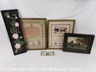 Lot #0248: 4pc Vtg. Needlepoint's & Artwork