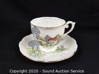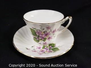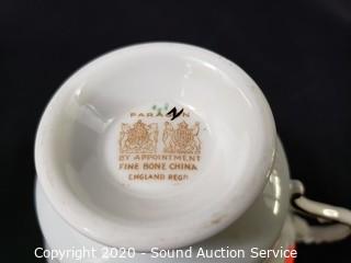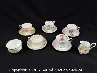 Lot #0245: 5 Fine China Teacups & Saucers w/Cream & Sugar