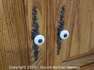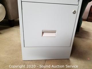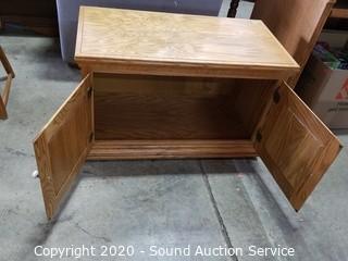 Lot Details: Cabinet is 20" H x 32.5" W x 16.5" D. In excellent condition. File cabinet has a few dents on the top. 29" H x 15" W x 18" D.