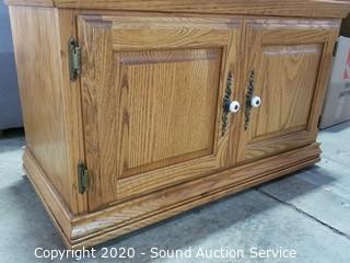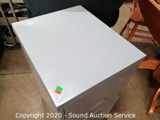 Lot #0063: Gray Steel File Cabinet & Oak Finish Cabinet