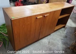 Lot #0033: Teak Veneer Finish Bookcase Cabinet