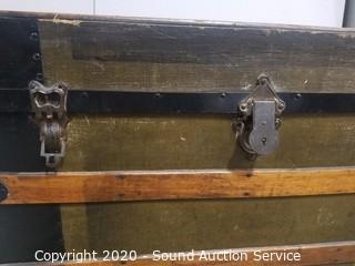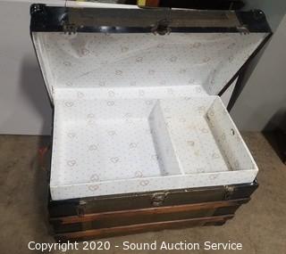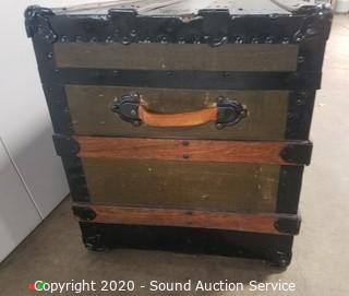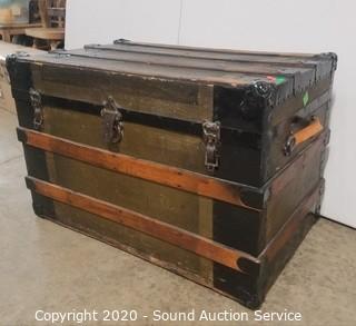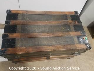 Lot #0043: Vtg. Wood Banded Steamer Trunk