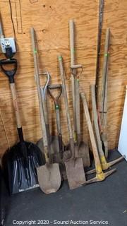 Lot #0361: 10 Shovels, Pickaxes & Post Hole Digger