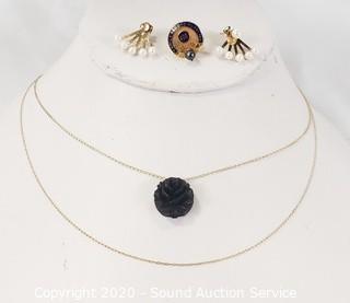 Lot #0251: 10K & 14K Gold Necklaces, Earrings & Pin
