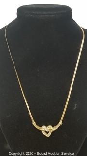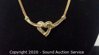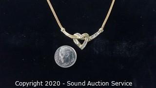 Lot #0387: 10K Gold & Diamond Heart Knot Pendant Necklace