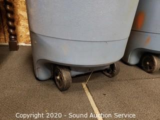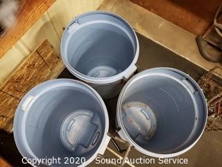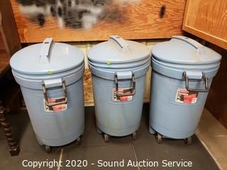 Lot #0169: 3 Light Blue Rubbermaid Trash Cans w/Lids