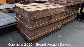 Lot #0357: Antique Wood Banded Steamer Trunk