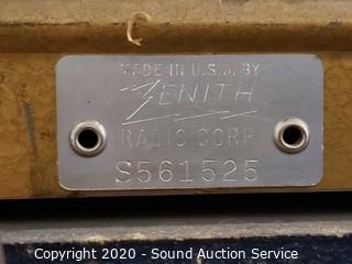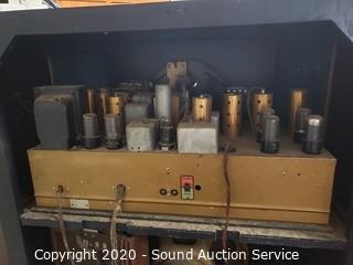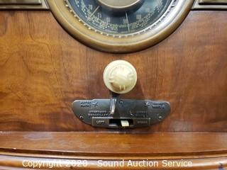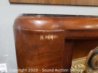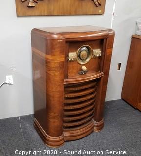Lot Details: Serial S561525. Do not see a model. Has power. Tuning knob is not working, couldn't pick up any signals. Cabinet has some minor wear, in great condition for it's age. 44" x 27.5" x 17".