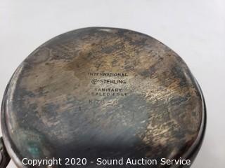 Lot Details: TW: 13.6oz. International Sterling Cream & Sugar, 3 sterling baby cups (one is International), Prelude sugar & lid.