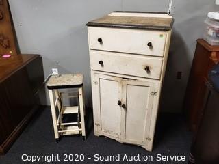 Lot #0160: Vtg. 2-Drawer Chest and Stool