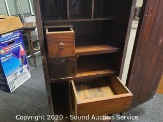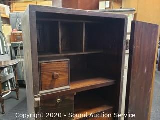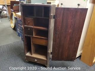 Lot Details: One of the drawers is locking, no key. 42" x 17.5" x 14.5". Various wear to the finish.