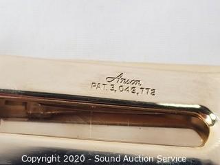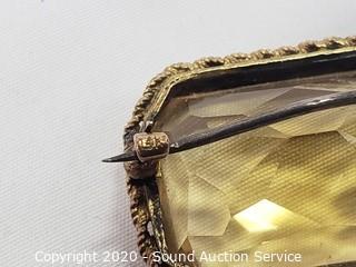 Lot Details: 44.6 grams without the genuine citrine pin, 50 grams with the pin. 19 x 25 mm cut citrine with gold filled bezel. Also comes with an Anson gold plate Doc money clip.