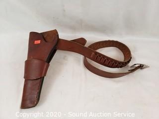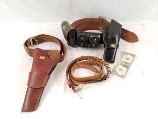 Lot #0261: 3 Leather Ammo Belts & 2 Holsters